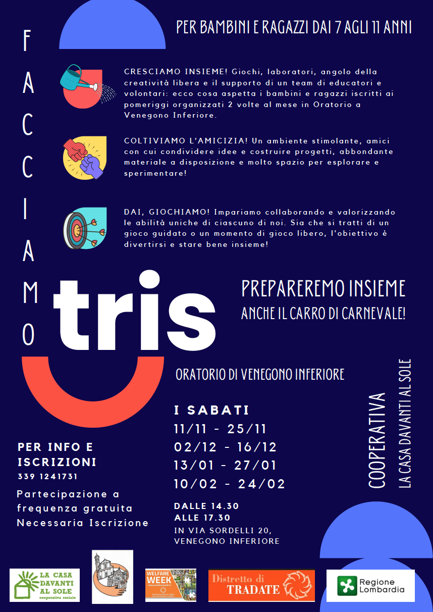 FACCIAMOtris, uno spazio di giochi all’Oratorio di Venegono: per giocare assieme, per condividere esperienze e imparare a stare in relazione con gli altri.